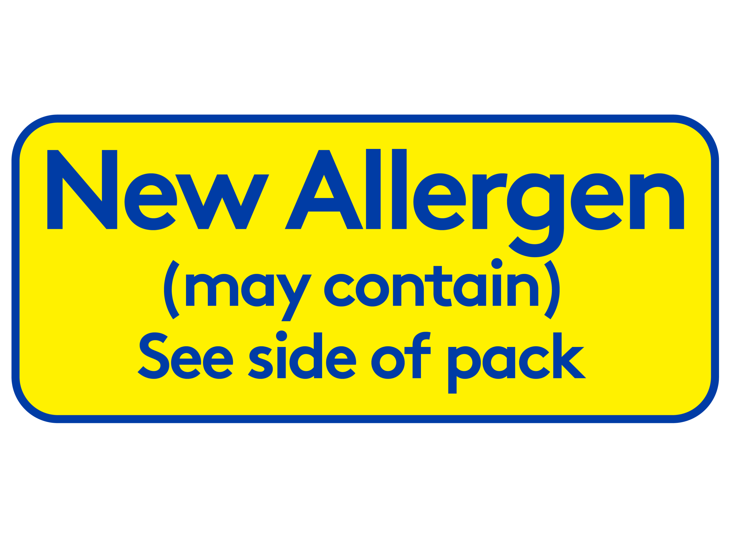 Allergen alert flashes have been included on front and side of pack for all products that may contain this new allergen to help consumers identify this change: