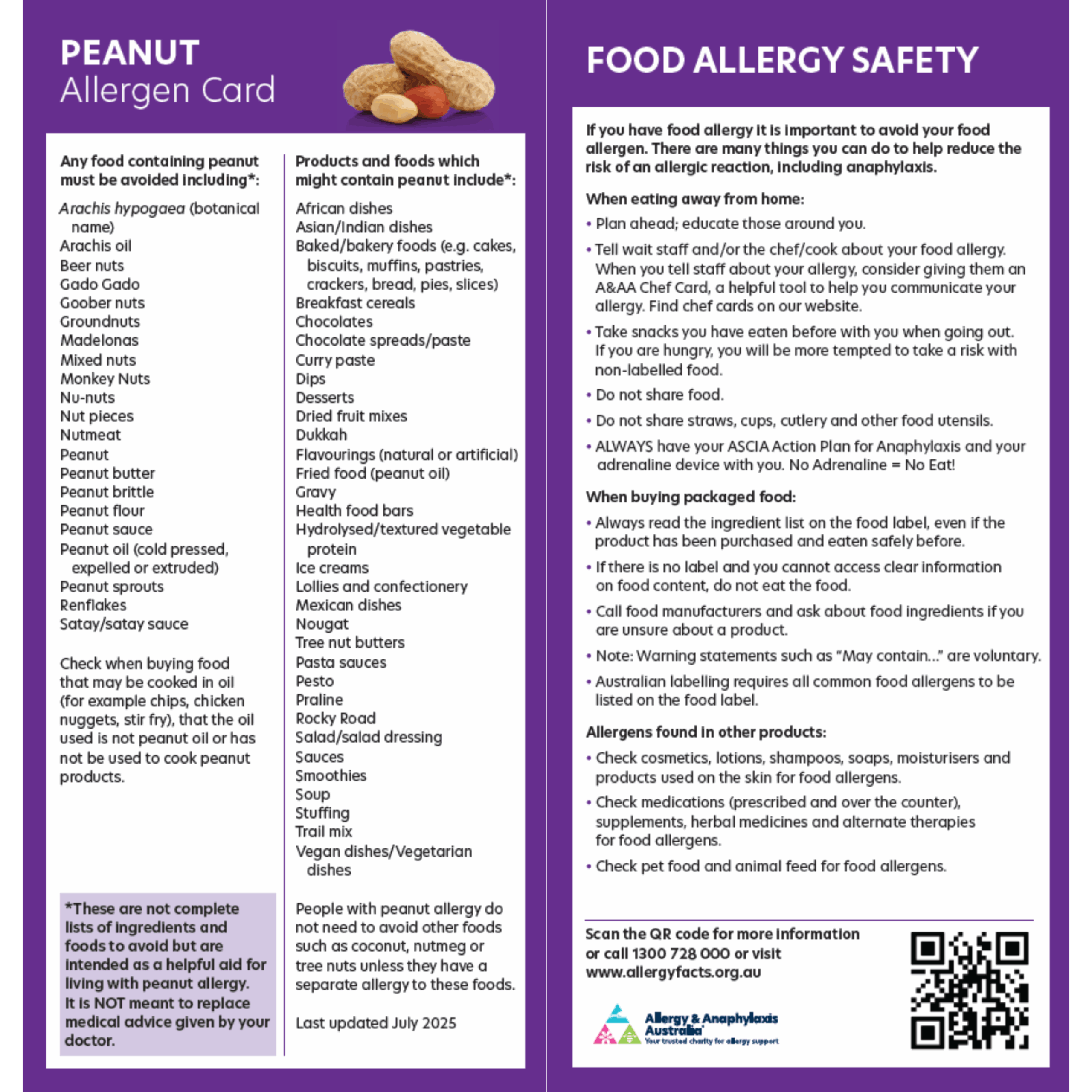 Please note: this factsheet is a guide only and does not contain a complete list of all foods that contain peanuts.