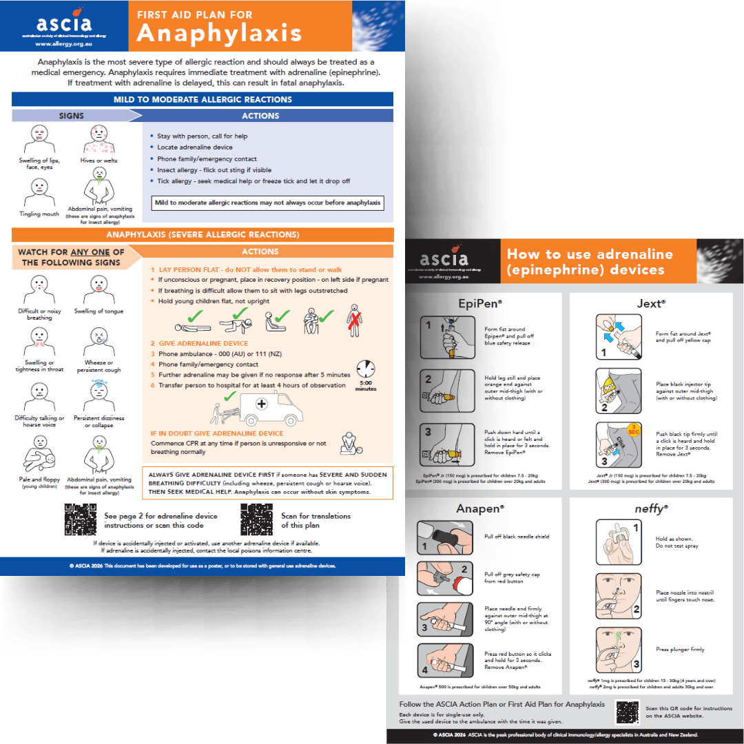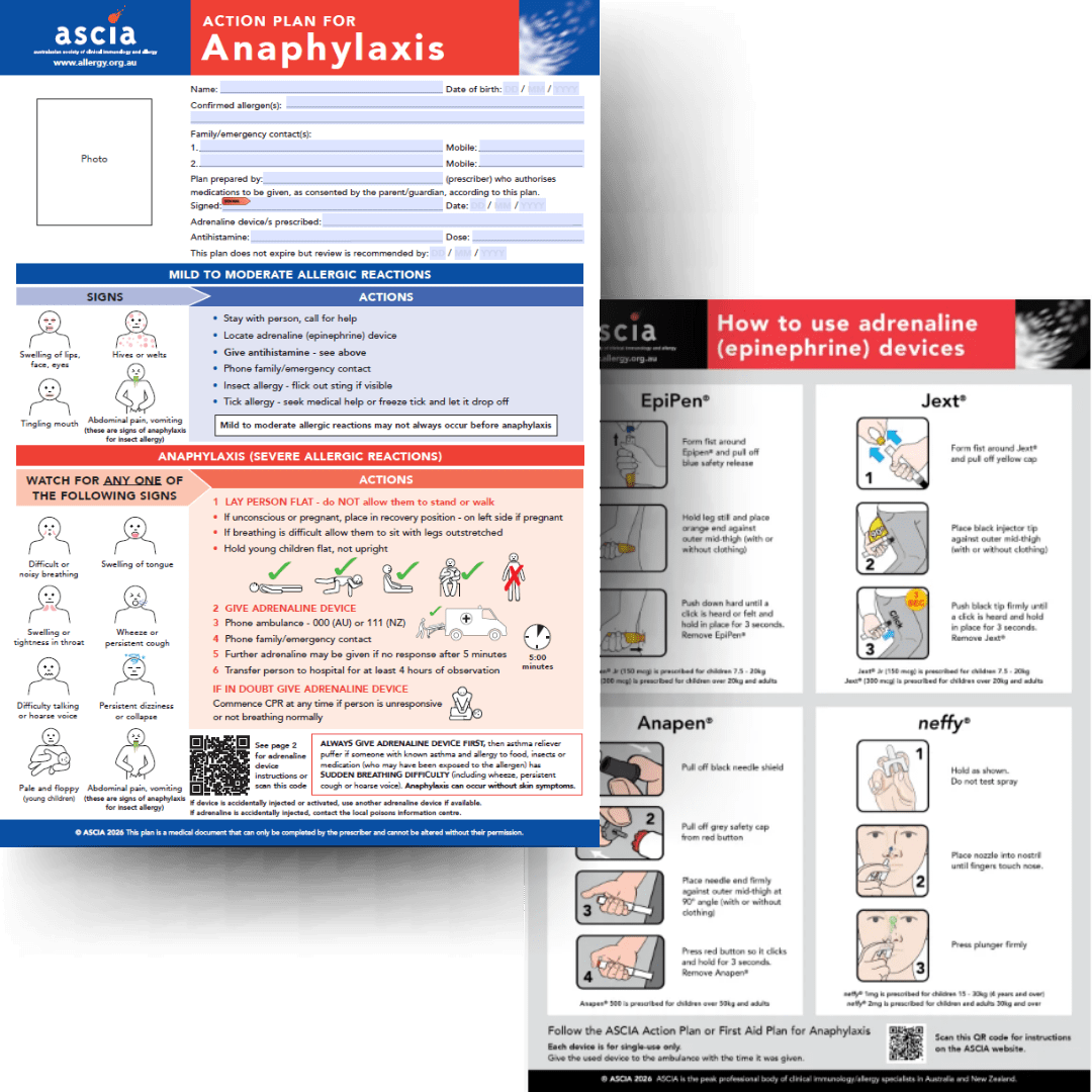 Download ASCIA Action Plans and First Aid Plans for Anaphylaxis from the ASCIA website.